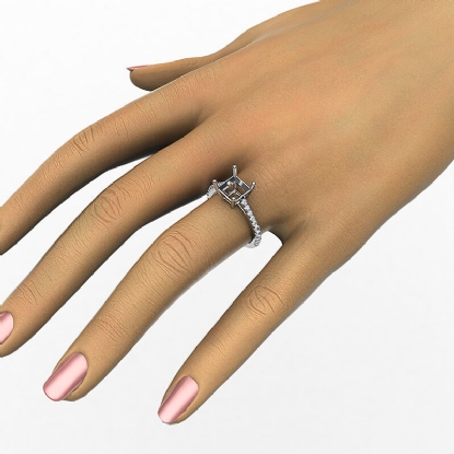 Beautiful cathedral french cut pave princess diamond semi mount engagement ring made in 18k Gold White. This engagement ring setting showcases round diamonds in a french U cut pave set on cathedral shank supporting center diamond with a basket setting. Available in 14k & 18k white gold, yellow gold, rose gold and platinum 950. If you don't find your desired jewelry, please don't hesitate to contact our designer to make your custom jewelry design (0.31Ct. tw.)
