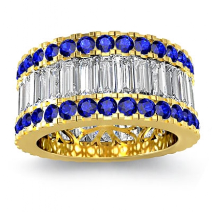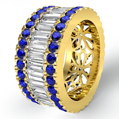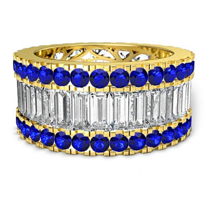 Baguette Round Sapphire Diamond Eternity Band 18k Gold Wedding Ring (3.78Ct. tw.)