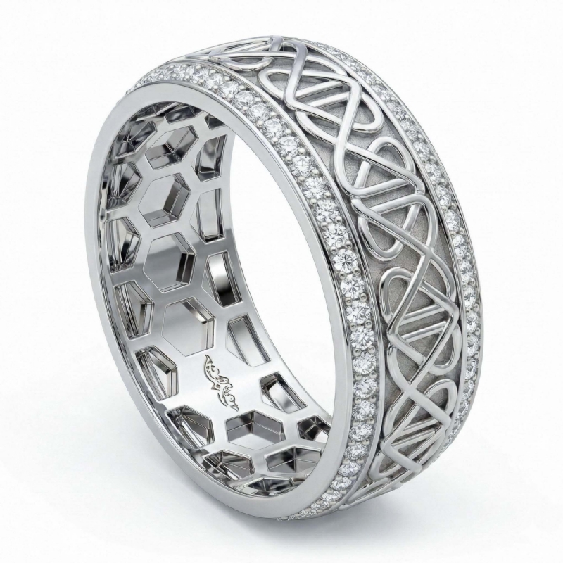 Celtic Design Round Diamond Eternity Mens Wedding Band 14k W Gold (1Ct. tw.)