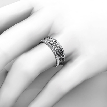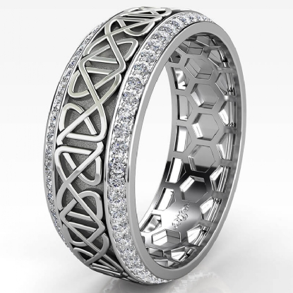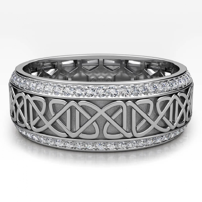 Celtic Design Round Diamond Eternity Mens Wedding Band 18k W Gold (1Ct. tw.)