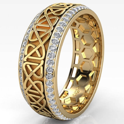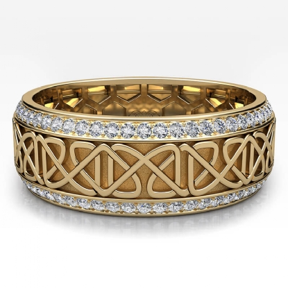Vintage artwork celtic design round diamond eternity men's wedding band handcrafted in 18k Gold Yellow. This comfort-fit high-quality ring features celtic design along the center in yellow gold with round diamonds in a micro pave setting on edges in white gold. Also available in 14k & 18k white gold, yellow gold, rose gold, two-tone gold and platinum 950. If you don't find your desired jewelry, please don't hesitate to contact our designer to make your custom jewelry design. (1Ct. tw.)