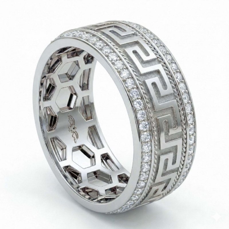 Greek Key Design Diamond Eternity Mens Wedding Band 14k W Gold (0.9Ct. tw.)