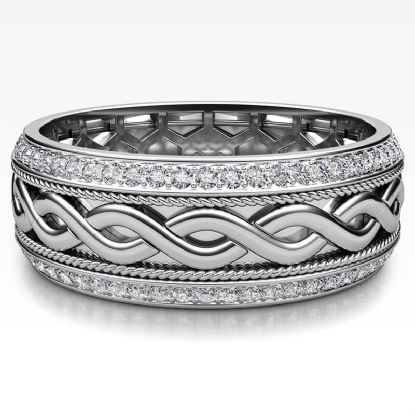 Infinity Pattern Diamond Eternity Men's Wedding Band 14k W Gold (0.9Ct. tw.)