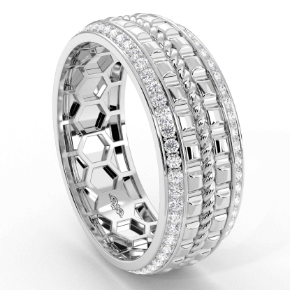 Center Rope Round Diamond Eternity Men's Wedding Band 18k W Gold (1.25Ct. tw.)