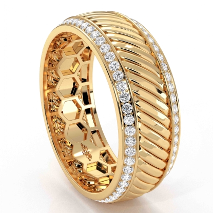 Highly polished candy cane design round diamond eternity men's wedding band handmade in 14k Gold Yellow. This comfort fit wedding ring features polished finish candy can design along the center with round diamonds in a micro pave setting on the edges. Also available in 14k & 18k white gold, yellow gold, rose gold and platinum 950. If you don't find your desired jewelry, please don't hesitate to contact our designer to make your custom jewelry design. (0.9Ct. tw.)