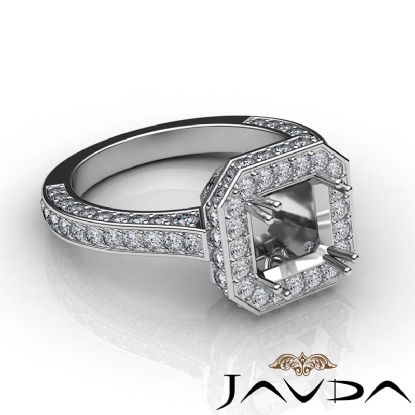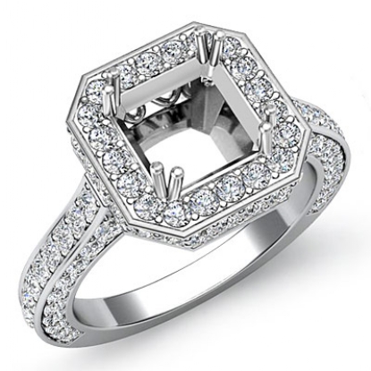 Halo Setting Diamond Engagement Ring Asscher Semi Mount 18k W Gold (1.7Ct. tw.)