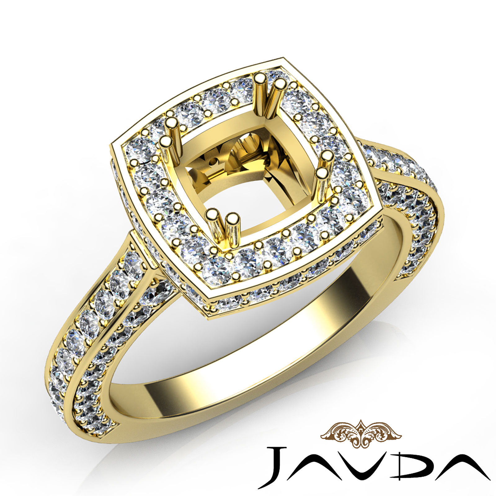 Bring brilliance to life?s great moments, with this semi mount diamond engagement ring, Made in 14k Gold Yellow, its features of round pave set diamonds in halo and the shank. (1.6Ct. tw.)
