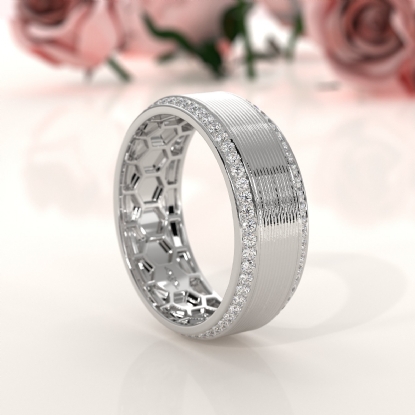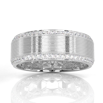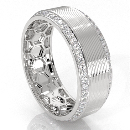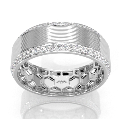 This classic and stylish polished finish center grooved round diamond eternity men's wedding band crafted in high quality Platinum 950. Features polished finish center grooved with round diamonds in a micro pave setting on edges and showcases honeycomb design inside the ring. Also available in 14k & 18k white gold, yellow gold, rose gold and platinum 950. If you don't find your desired jewelry, please don't hesitate to contact our designer to make your custom jewelry design. (1.2Ct. tw.)