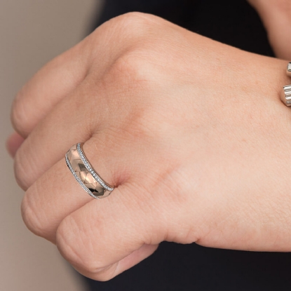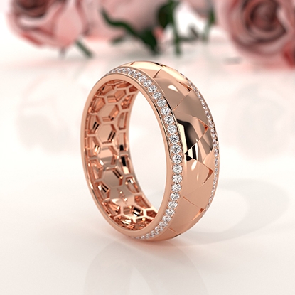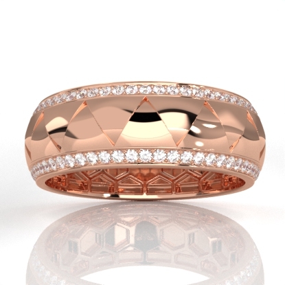 Comfort fit dome zigzag pattern round diamond eternity men's wedding band made in 14k Rose Gold. This anniversary ring features polished finish center dome with zigzag pattern and round diamonds in a micro pave setting on the edges with beautiful honeycomb design inside the ring. Also available in 14k & 18k white gold, yellow gold, rose gold and platinum 950. If you don't find your desired jewelry, please don't hesitate to contact our designer to make your custom jewelry design. (0.9Ct. tw.)