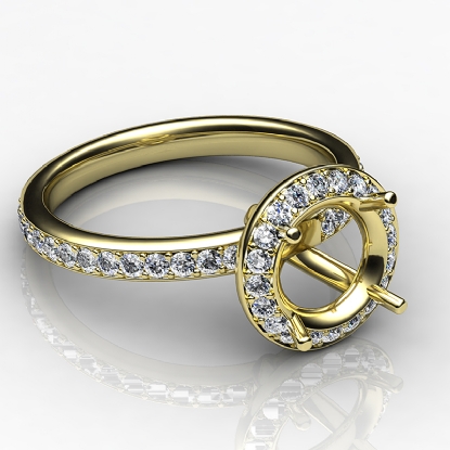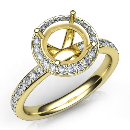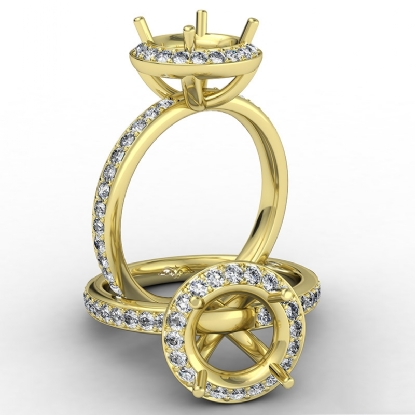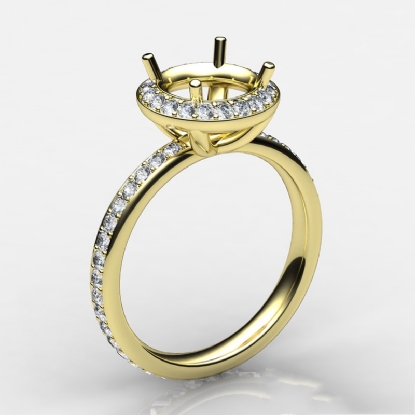 Alluringly distinct, this 14k Gold Yellow & vintage diamond engagement ring features of pave set round diamonds in a semi mount halo and the elegant shank. (0.6Ct. tw.)