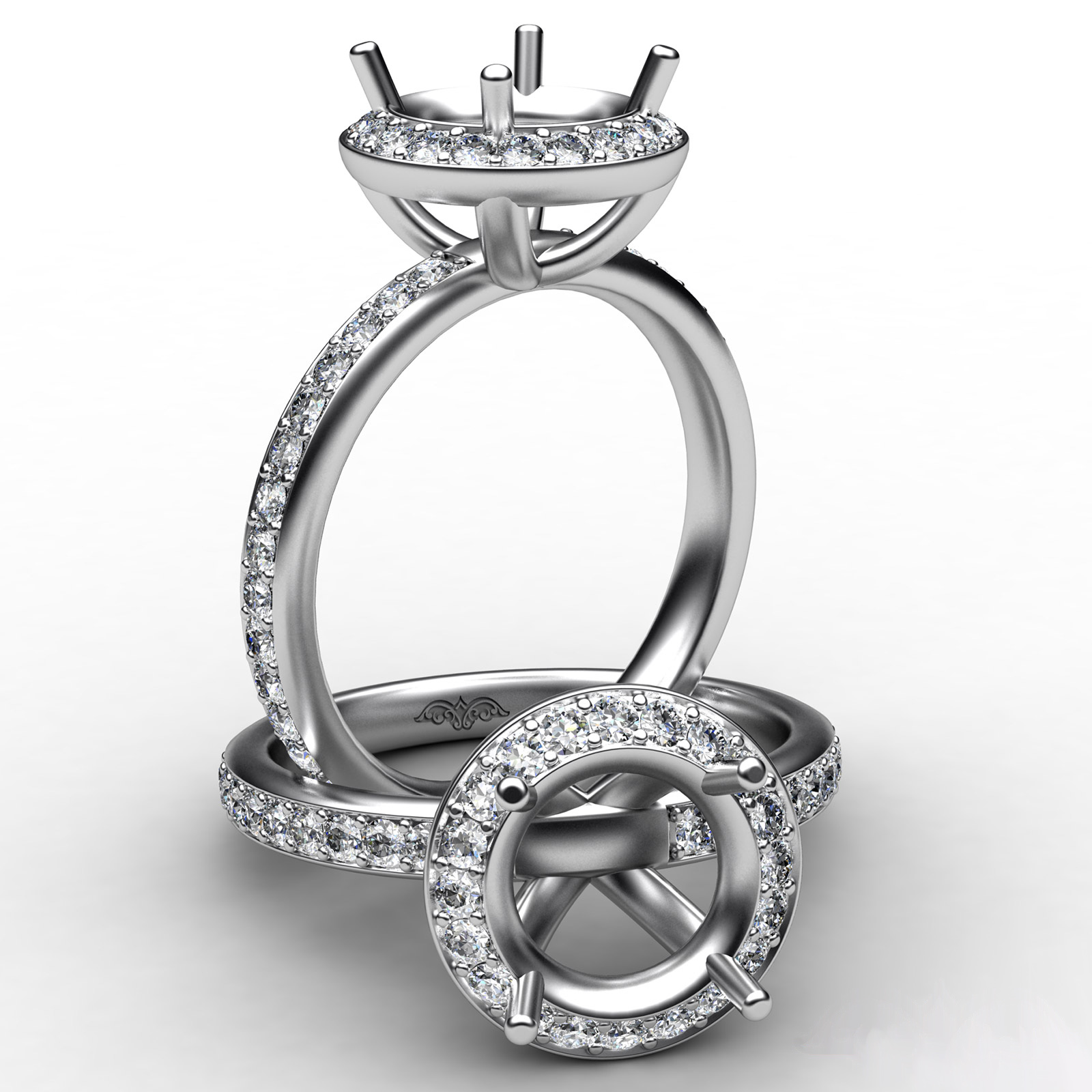 Pave Diamond Vintage Engagement Ring 18k W Gold Halo Setting Semi Mount (0.95Ct. tw.)