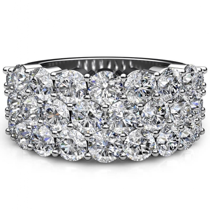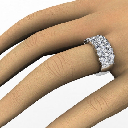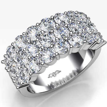 Dazzling wide style three-row diamond wedding band for women handmade in 18k Gold White. This stunning diamond ring features three-row round diamonds in a prong setting, show off your sparkle with this luxurious touch of a diamond ring. Available in 14k & 18k white gold, yellow gold, rose gold, and platinum 950. If you don't find your desired jewelry, please don't hesitate to contact our designer to make your custom jewelry design. (2.82Ct. tw.)