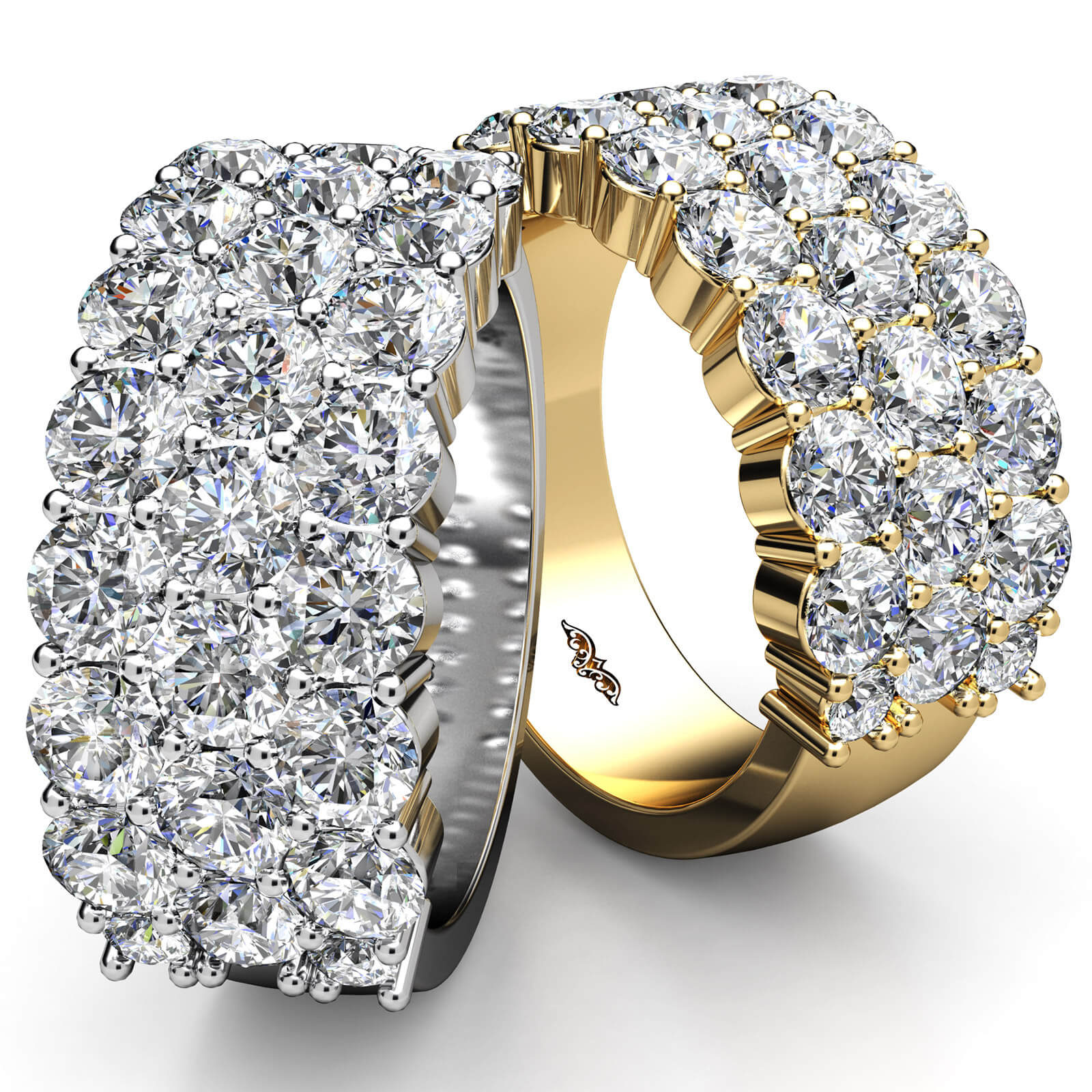 Dazzling wide style three-row diamond wedding band for women handmade in 18k Gold Yellow. This stunning diamond ring features three-row round diamonds in a prong setting, show off your sparkle with this luxurious touch of a diamond ring. Available in 14k & 18k white gold, yellow gold, rose gold, and platinum 950. If you don't find your desired jewelry, please don't hesitate to contact our designer to make your custom jewelry design. (2.82Ct. tw.)