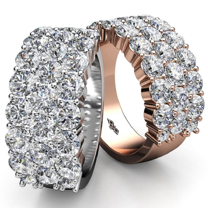 Dazzling wide style three-row diamond wedding band for women handmade in 14k Rose Gold. This stunning diamond ring features three-row round diamonds in a prong setting, show off your sparkle with this luxurious touch of a diamond ring. Available in 14k & 18k white gold, yellow gold, rose gold, and platinum 950. If you don't find your desired jewelry, please don't hesitate to contact our designer to make your custom jewelry design. (2.82Ct. tw.)
