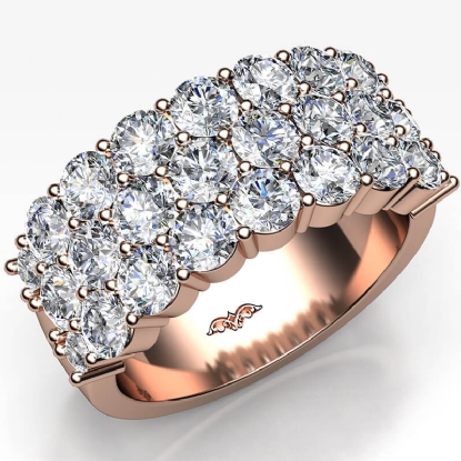 Three Row Round Diamond Wedding Band For Women 14k Rose Gold (2.82Ct. tw.)