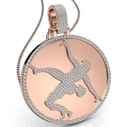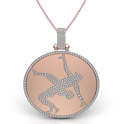This custom glamorous couple diamond pendant handcrafted in 14k Rose Gold. Elegant circle diamond pendant showcases diamonds surrounding pendant with couple along the center secured with diamond bail and 18 inches rolo chain. If you don't find your desired jewelry, please don't hesitate to contact our designer to make your custom jewelry design (4Ct. tw.)
