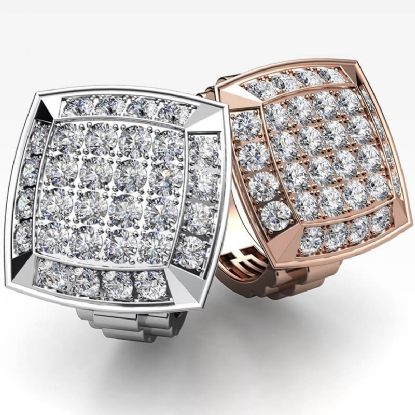 Handsome & modern halo style cluster diamond men's signet ring handcrafted in 18k Rose Gold. This beautiful high polished ring features brilliant round cluster diamonds in a micro pave setting. Also available in 14k & 18k white gold, yellow gold, rose gold and platinum 950. If you don't find your desired jewelry, please don't hesitate to contact our designer to make your custom jewelry design (3Ct. tw.)