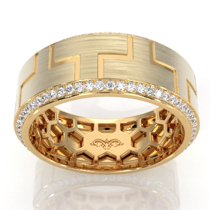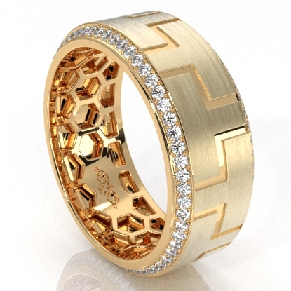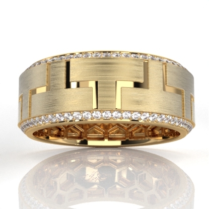 Sophisticated yet classic this carved design diamond eternity men's wedding band skillfully crafted in 18k Gold Yellow. This beautiful ring showcases round diamonds on edges in a micro pave setting and matte finish along the center. Also available in 14k & 18k white gold, yellow gold, rose gold and platinum 950. If you don't find your desired jewelry, please don't hesitate to contact our designer to make your custom jewelry design (0.9Ct. tw.)