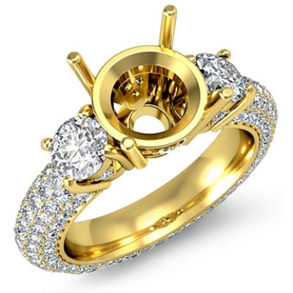 Three 3 Stone Round Diamond Engagement Ring Setting 14k Gold Semi Mount (2.64Ct. tw.)