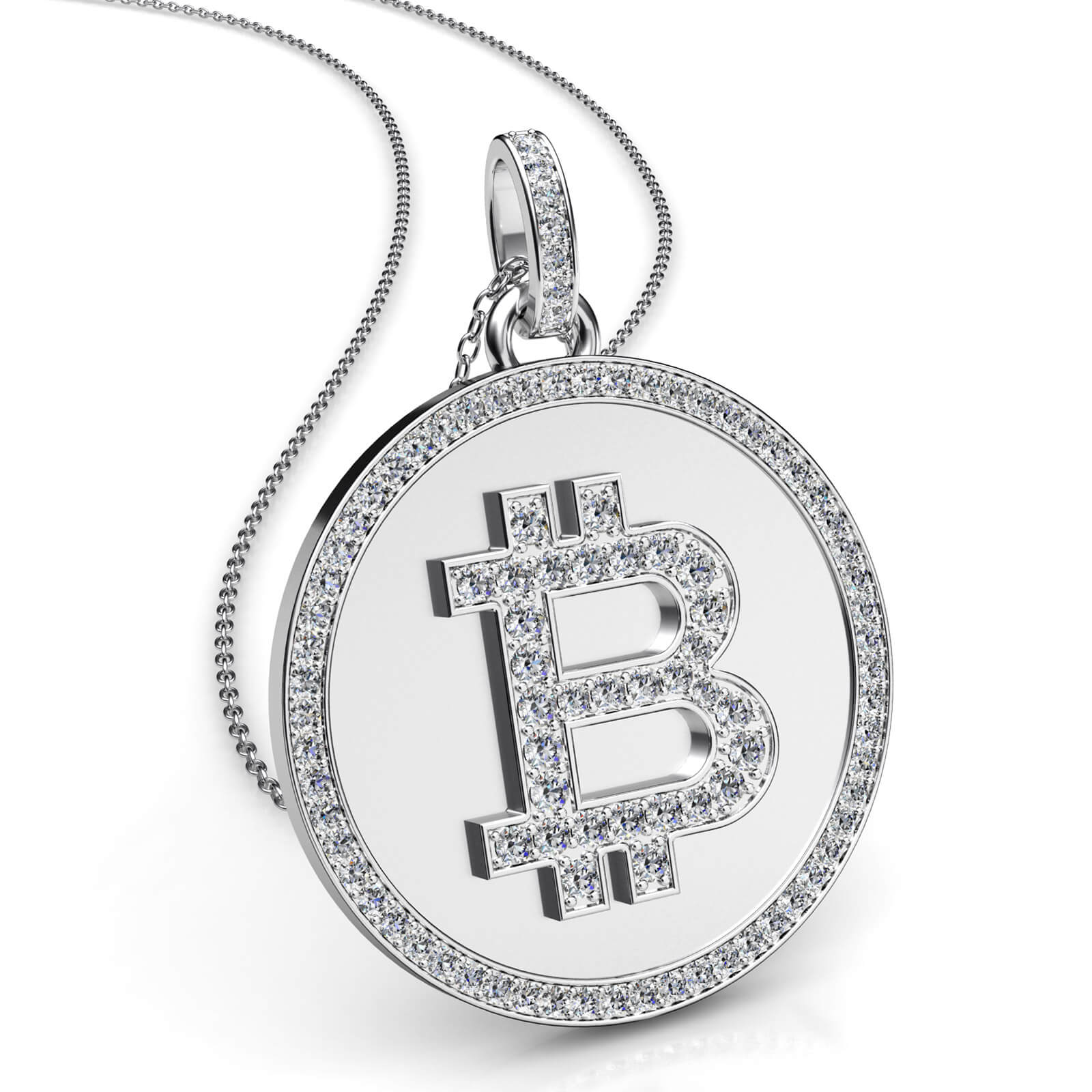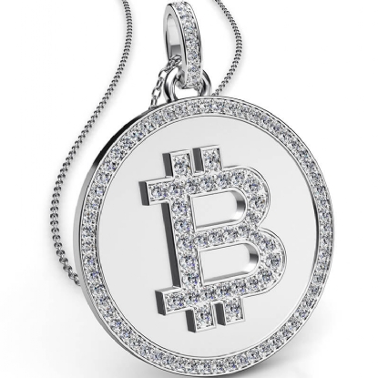 Bitcoin Diamond Pendant Necklace 18k W Gold 18" rolo chain (1.5Ct. tw.)