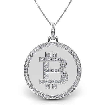 Timeless bitcoin diamond pendant necklace handcrafted in high quality 18k Gold White. This unique-looking pendant decorated with round diamonds in a micro pave setting that secured with an 18-inch rolo chain. This bitcoin diamond pendant can be the perfect gift for any cryptocurrency enthusiast or for a party, Christmas, wedding, engagement, anniversary, graduations, birthdays, valentine's day, mother's day, and so on. Also available in 14k & 18k white gold, yellow gold, rose gold and platinum 950. If you don't find your desired jewelry, please don't hesitate to contact our designer to make your custom jewelry design (1.5Ct. tw.)