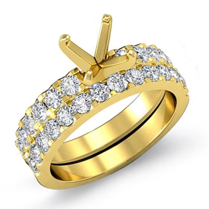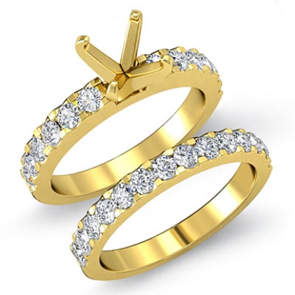 Sleek and elegant, this 18k Gold Yellow semi mount bridal set features prong set round diamonds on the engagement ring and the matching band. The total weight of this set is . (1.2Ct. tw.)