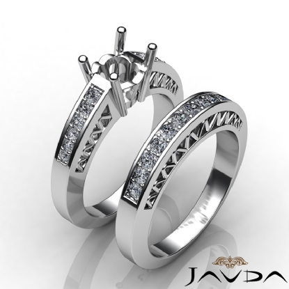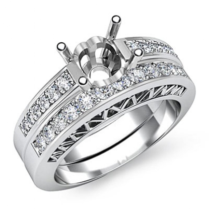 Express your love with this 18k Gold White Bridal set. The beautiful engagement ring features of round diamonds in pave setting along the shank and matching band. Delicate filigree adds beauty to the shank (0.61Ct. tw.)