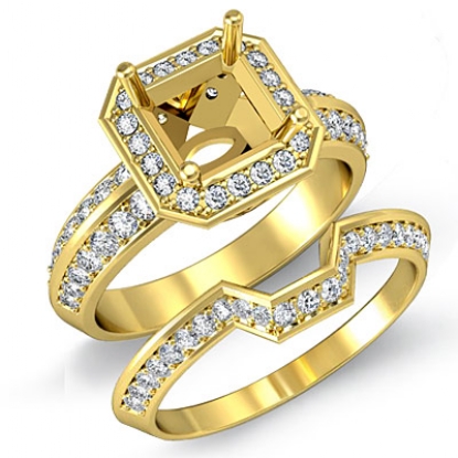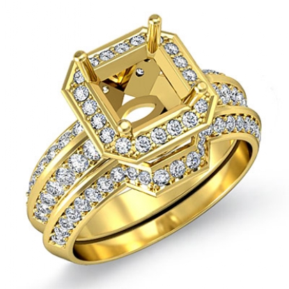 Diamond Bridal Engagement Set SemiMount 18k Gold Asscher Shape Ring (1.45Ct. tw.)
