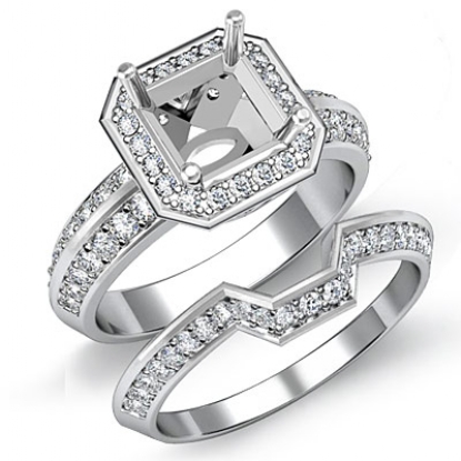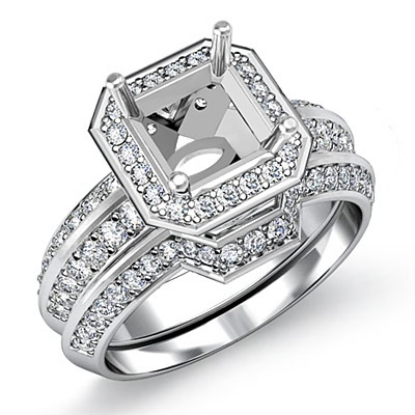 Diamond Bridal Engagement Set SemiMount Platinum Asscher Shape Ring (1.45Ct. tw.)