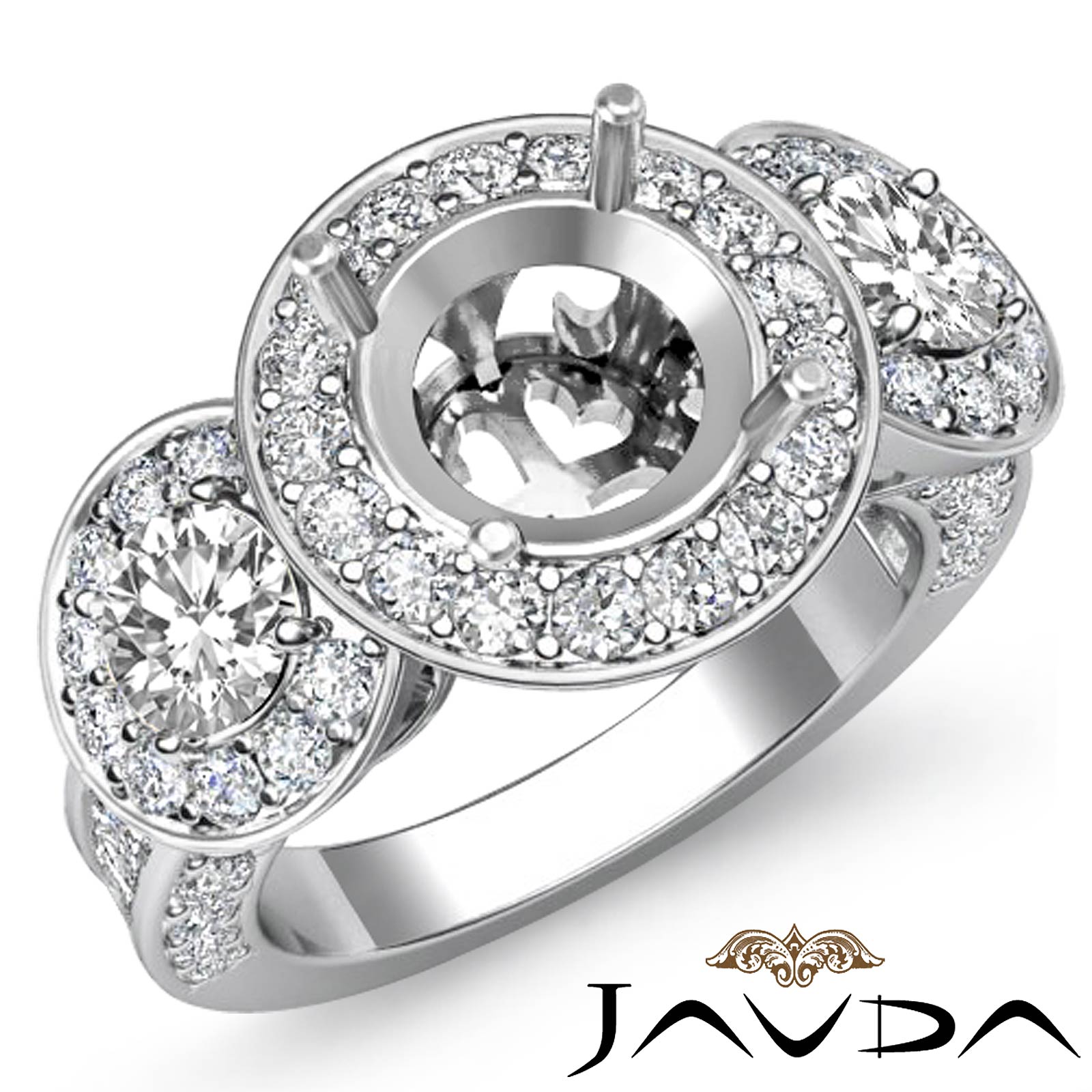 Three Stone Diamond Engagement Setting Platinum Round SemiMount Ring (1.3Ct. tw.)