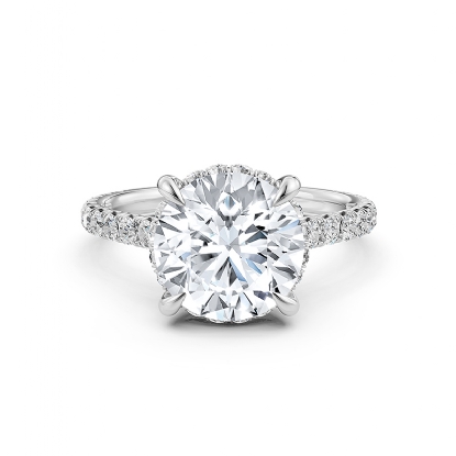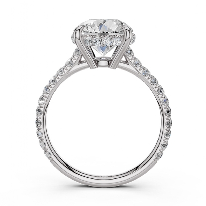 Stunning french U pave set hidden halo diamond round semi-mount engagement ring handcrafted in high-quality Platinum 950. This beautiful cathedral ring setting showcases round diamonds in a french U split pave setting on halo and shank. Also available in 14k & 18k white gold, yellow gold, rose gold and platinum 950. If you don't find your desired jewelry, please don't hesitate to contact our designer to make your custom jewelry design (0.52Ct. tw.)