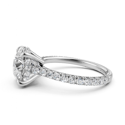 French U Hidden Halo Diamond Oval Semi Mount Engagement Ring Platinum (0.52Ct. tw.)