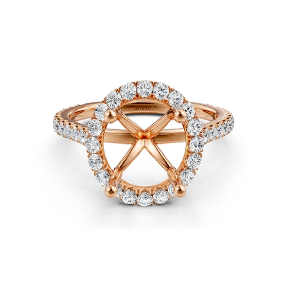 French U Pave Halo Semi Mount Diamond Engagement Ring 14k Rose Gold (0.54Ct. tw.)