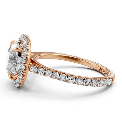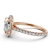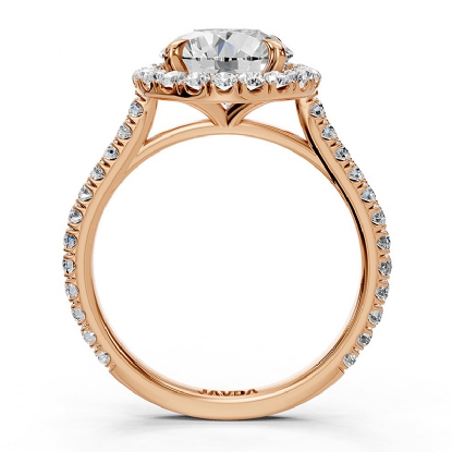 This gorgeous halo semi mount diamond engagement ring is made in high-quality 14k Rose Gold. Showcases dazzling round diamonds in a french U cut pave setting on halo and a beautiful cathedral shank. Also available in 14k & 18k white gold, yellow gold, rose gold and platinum 950. If you don't find your desired jewelry, please don't hesitate to contact our designer to make your custom jewelry design (0.54Ct. tw.)