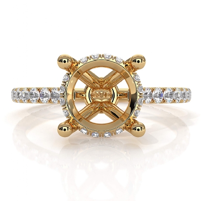 Hidden Halo U Pave Round Semi Mount Diamond Engagement Ring 18k Gold (0.47Ct. tw.)