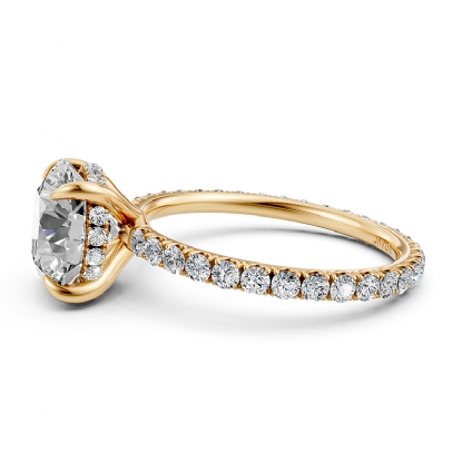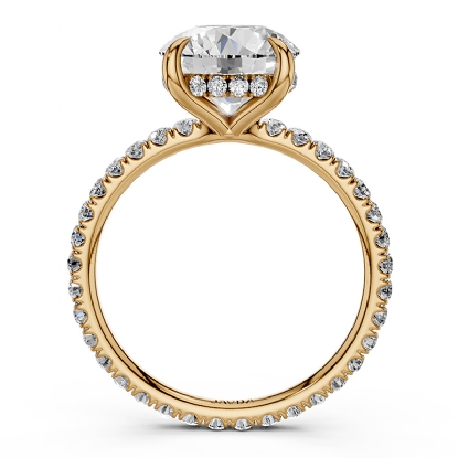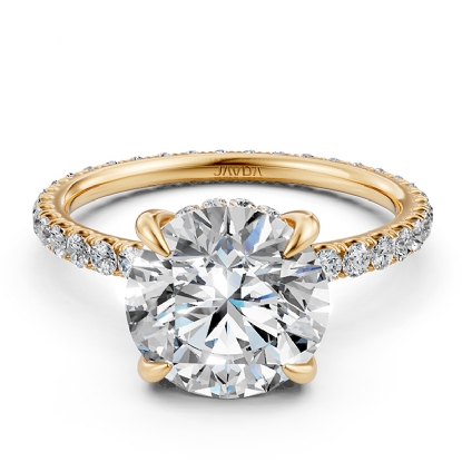 Add this new addition to your style hidden halo claw prong round semi mount diamond engagement ring handmade in 14k Gold Yellow. Showcases claw prong round semi mount with round diamonds in a french U cut pave setting on halo and shank. Also available in 14k & 18k white gold, yellow gold, rose gold and platinum 950. If you don't find your desired jewelry, please don't hesitate to contact our designer to make your custom jewelry design (0.6Ct. tw.)