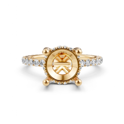Hidden Halo French U Cut Pave Semi Mount Diamond Engagement Ring 14k Gold (0.6Ct. tw.)