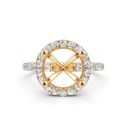Add a flair of sophistication to your attire with this stunning round halo semi-mount diamond engagement ring made in high-quality 14k Gold Yellow. This ring showcases brilliant round lab-grown diamonds in a french U cut pave setting on halo and beautiful shank. Also available in 14k & 18k white gold, yellow gold, rose gold and platinum 950. If you don't find your desired jewelry, please don't hesitate to contact our designer to make your custom jewelry design (0.59Ct. tw.)