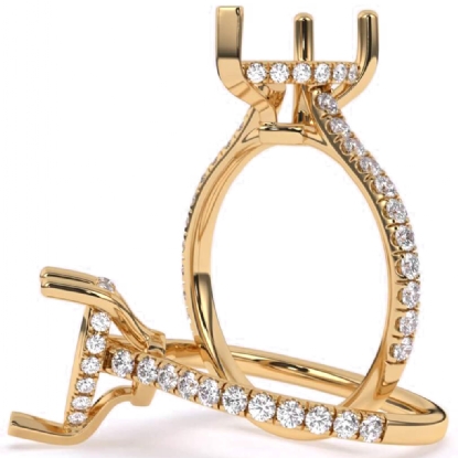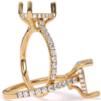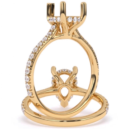 Hidden Halo French Pave Pear Semi Mount Diamond Engagement Ring 18k Gold (0.5Ct. tw.)