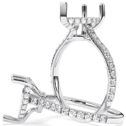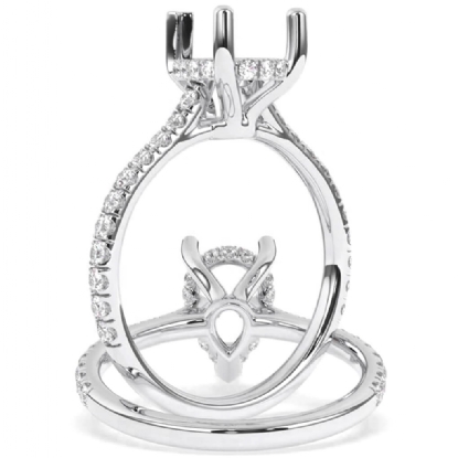 Hidden Halo French Pave Pear Semi Mount Diamond Engagement Ring Platinum (0.5Ct. tw.)