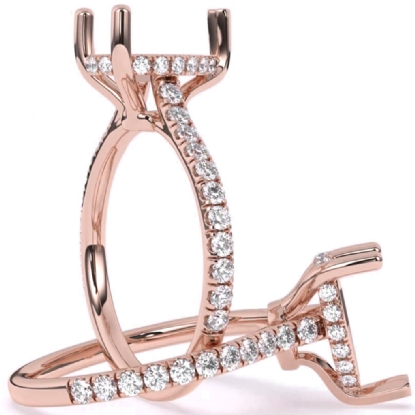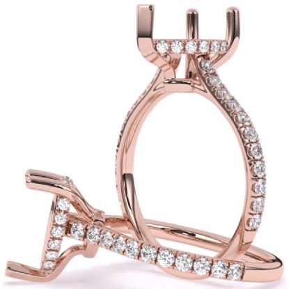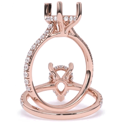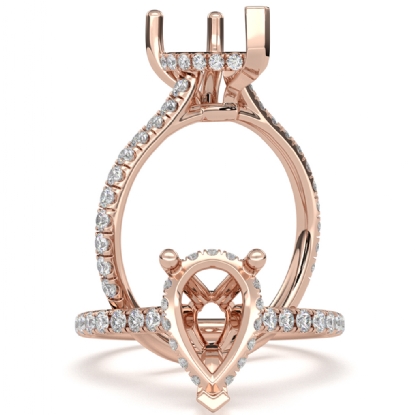 Hidden Halo French Pave Pear Semi Mount Diamond Engagement Ring 14k Rose Gold (0.5Ct. tw.)