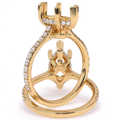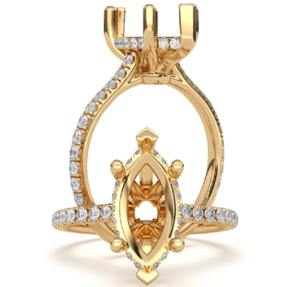 Masterpiece, this hidden halo french u cut pave marquise semi mount diamond engagement ring is made in high quality 14k Gold Yellow. Features a glittering round diamonds in a french U cut pave setting on a hidden halo and a beautiful cathedral shank. Also available in 14k & 18k white gold, yellow gold, rose gold, and platinum 950. If you don't find your desired jewelry, please don't hesitate to contact our designer to make your custom jewelry design (0.51Ct. tw.)