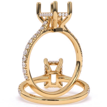 Add this new addition to your style french u cut pave hidden halo radiant semi-mount diamond engagement ring made in 14k Gold Yellow. This beautiful ring showcases radiant cut semi-mount with dazzling round diamonds in a french U cut pave set on hidden halo and a cathedral shank. Also available in your choice of the center diamond and gold metal in 14k & 18k white gold, yellow gold, rose gold, and platinum 950. If you don't find your desired jewelry, please don't hesitate to contact our designer to make your custom jewelry design (0.47Ct. tw.)