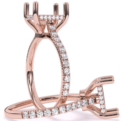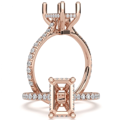 French U Pave Hidden Halo Radiant Semi Mount Engagement Ring 14k Rose Gold (0.47Ct. tw.)