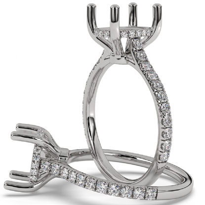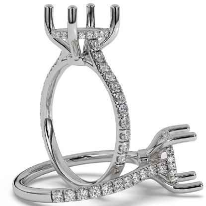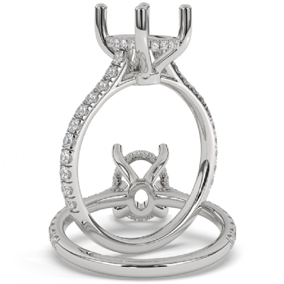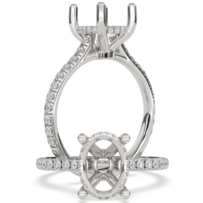Hidden Halo French Pave Oval Semi Mount Diamond Engagement Ring Platinum (0.47Ct. tw.)