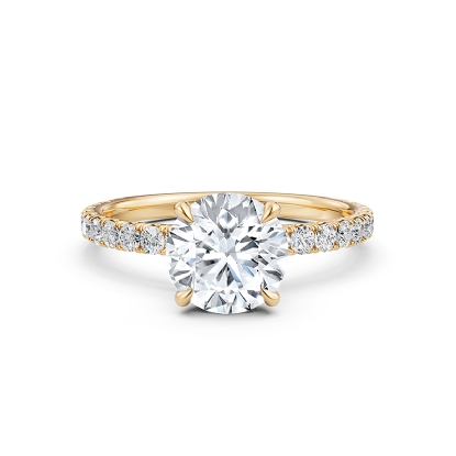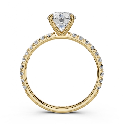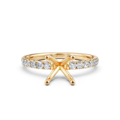 Sleek and elegant, this 18k Gold Yellow multi shape semi mount ring features prong set round diamonds along the shank. The total weight of this diamond engagement ring is . (0.47Ct. tw.)