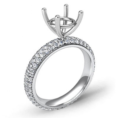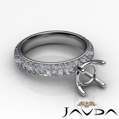 Round Pave Setting Diamond Women Engagement Ring Semi Mount 18k W Gold (1.08Ct. tw.)