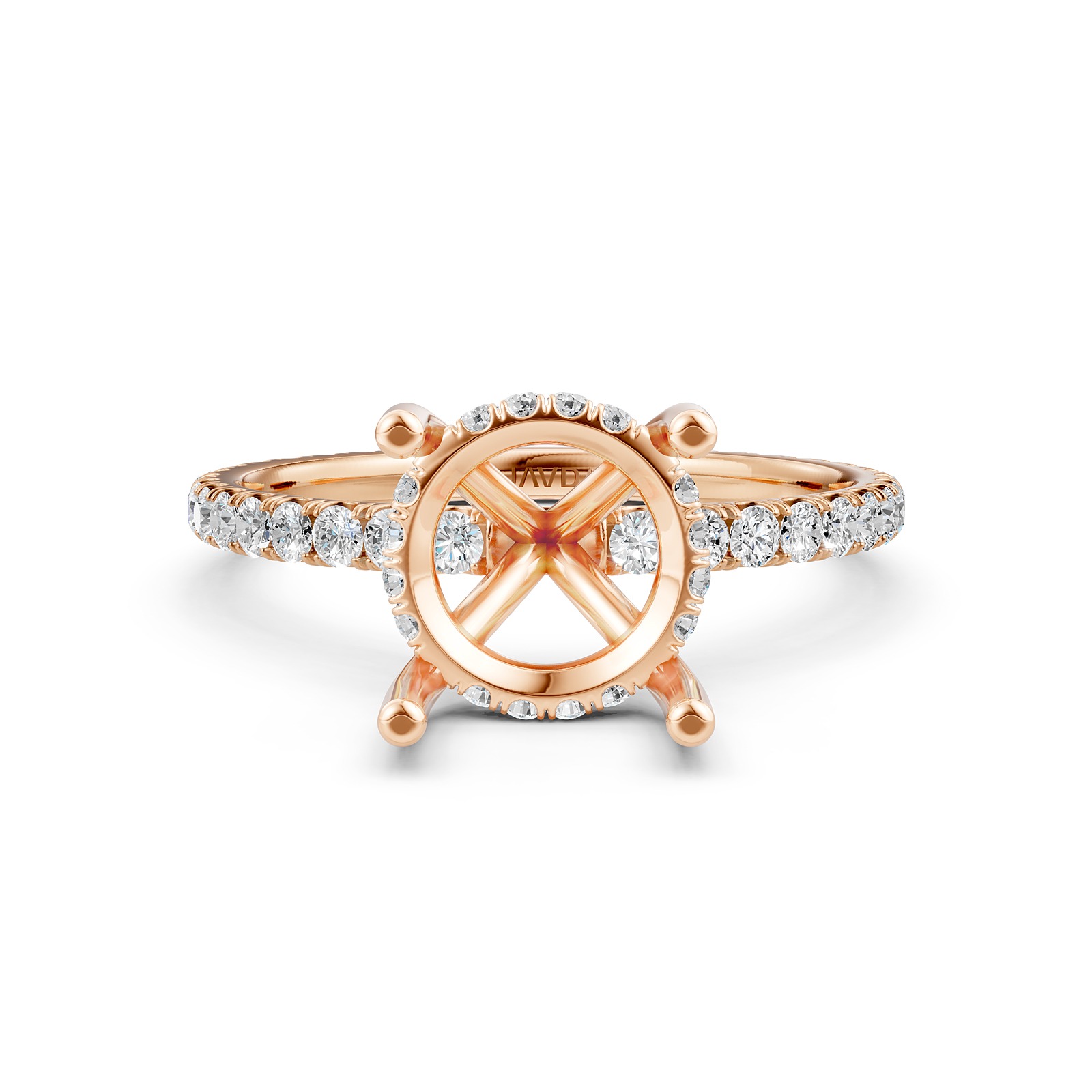 U Pave Hidden Halo Semi Mount Diamond Engagement Ring 14k Rose Gold (0.48Ct. tw.)