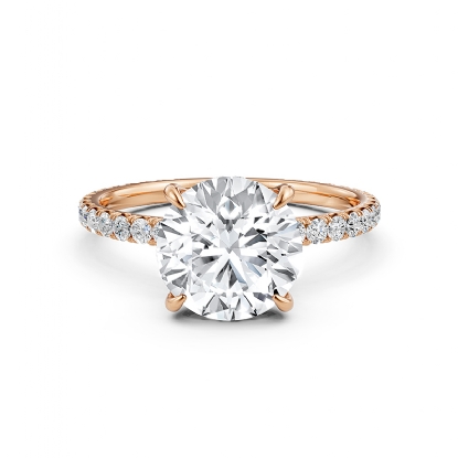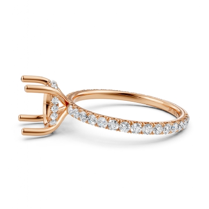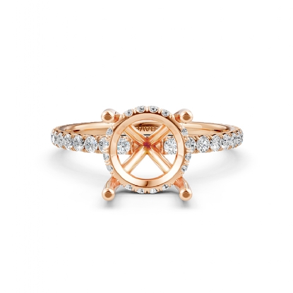 Classic yet simple, this hidden halo round semi mount diamond engagement ring made in 14k Rose Gold. Showcases shimmering round diamonds in a french U cut pave setting on hidden halo and shank. Also available in 14k & 18k white gold, yellow gold, rose gold and platinum 950. If you don't find your desired jewelry, please don't hesitate to contact our designer to make your custom jewelry design (0.48Ct. tw.)