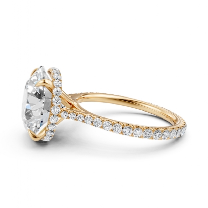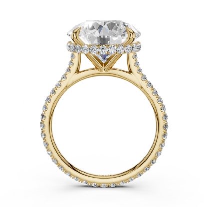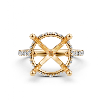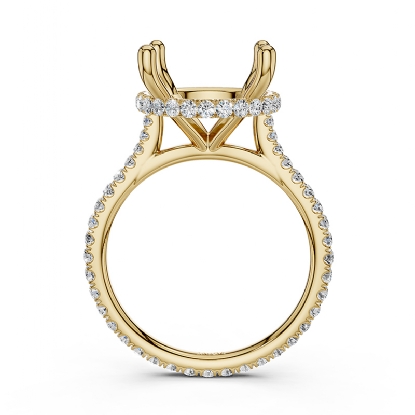 This masterpiece cathedral round halo french u cut pave diamond engagement ring setting is handmade in high-quality 18k Gold Yellow. Showcases brilliant round diamonds in a french U cut pave setting on halo and on a beautiful cathedral shank. Also available in your choice of the center diamond and gold metal in 14k & 18k white gold, yellow gold, rose gold, and platinum 950. If you don't find your desired jewelry, please don't hesitate to contact our designer to make your custom jewelry design (0.55Ct. tw.)